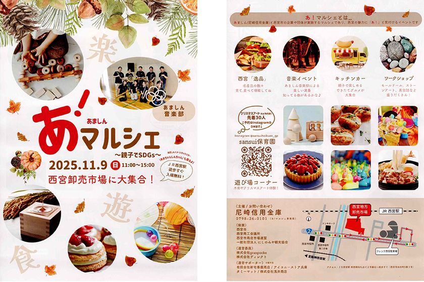 キッチンカーや屋台、音楽やこどもイベントで西宮の美味しい!すごい!楽しい!が集まる「あ!マルシェ」が今年も開催されます。